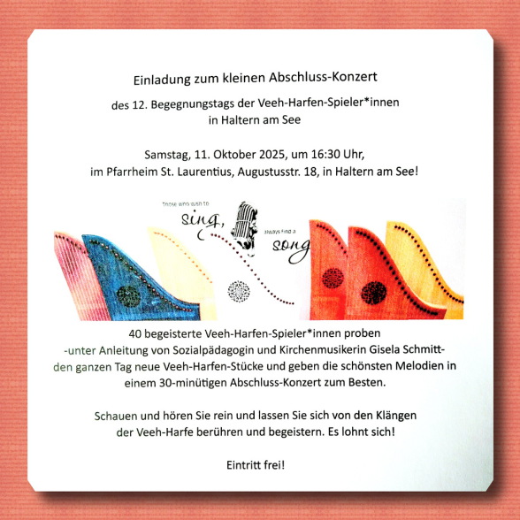 Einzelunterricht, unverbindliche und ausführliche Beratung zum Kauf einer Veeh-Harfe sowie auch Einführung in das Veeh-Noten-Schreibprogramm sind jederzeit möglich.