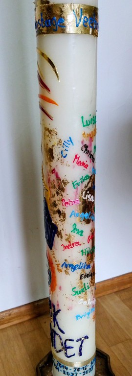 Zum ersten Mal mit dabei die neue Begegnungstagskerze, auf der alle Namen verewigt sind, die an diesem Tag mitgemacht haben.