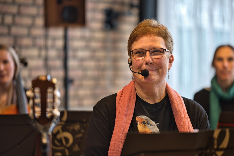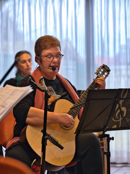 An diesem Abend erklangen sowohl Lieder von der CD „Dialog“, die Gisela Schmitt während der Coronazeit gemeinsam mit dem Musikproduzenten Chris Paus veröffentlicht hatte, als auch viele neue Stücke sowie einige meditative Gesänge zum Mitsingen für alle. Jedes Lied brachte dabei seine eigene Hintergrundgeschichte zur Entstehung und Bedeutung mit, von Schmitt im Rahmen ihrer Moderation offen erzählt. „Viele Lieder entstanden in Zeiten, in denen es mir nicht gut ging“, so die Musikpädagogin. „Und plötzlich war da ein Lied und sang mir zu: Gib nicht auf. Du bist nicht allein. Glaube an den Gottesfunken in dir.“ Ihre ersten Stücke schrieb Schmitt bereits als Jugendliche und junge Erwachsene: „Mit 16 Jahren habe ich angefangen, Gitarre zu spielen. Sie war und ist mein Seeleninstrument, auch wenn ich Orgel und Klavier studiert habe.“ Schon damals verlieh sie ihren Gedanken und Gefühlen durch das Komponieren Ausdruck – „wobei diese Lieder nicht für die Ohren anderer gedacht waren“.