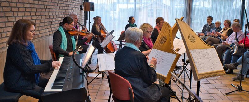 So sollte Pfarrer Michael Ostholthoff nicht zu viel versprechen, als er in seinem Grußwort ein „Festmenü für die Seele“ ankündigte. Bereitet wurde dieses durch insgesamt acht Musikerinnen und Musiker: Sueli Heider (Klavier und Veeh-Harfe) Marianne Hippe und Martina Müller (Veeh-Harfen), Georg Kleemann (Geige), David Schütz (Klarinette), Miriam Schütz (Cello), Katrin Sturm (afrikanische Trommeln) sowie Gisela Schmitt (Gesang und Gitarre).